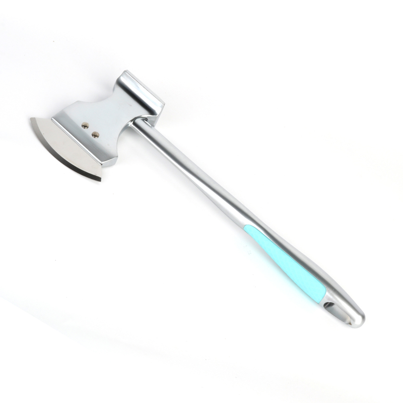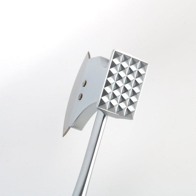 অল-ইন-ওয়ান টুল যা একটি নতুন ডিজাইনের জিঙ্ক অ্যালয় মিট টেন্ডারাইজার এবং একটি পিজা কাটার উভয়ই হিসাবে কাজ করে, এর দৈর্ঘ্য 25 সেমি। সামনের প্রান্তটি দুটি কার্যকরী পৃষ্ঠে বিভক্ত: একটি মাংসের টেন্ডারাইজারের জন্য এবং অন্যটি পিজা কাটার জন্য। হ্যান্ডেলটি একটি অপ্টিমাইজ করা আর্ক দিয়ে ডিজাইন করা হয়েছে এবং একটি প্রাপ্তবয়স্ক হাতের মোটা অংশটি শক্তভাবে ধরে রাখা হয়েছে। হাত। এবিএস প্লাস্টিকের তৈরি একটি কুশন হ্যান্ডেলের লেজে যোগ করা হয় যাতে তালুর ব্যথা কম হয় এবং দীর্ঘায়িত ব্যবহারের সময় আরাম বাড়ানো যায়।